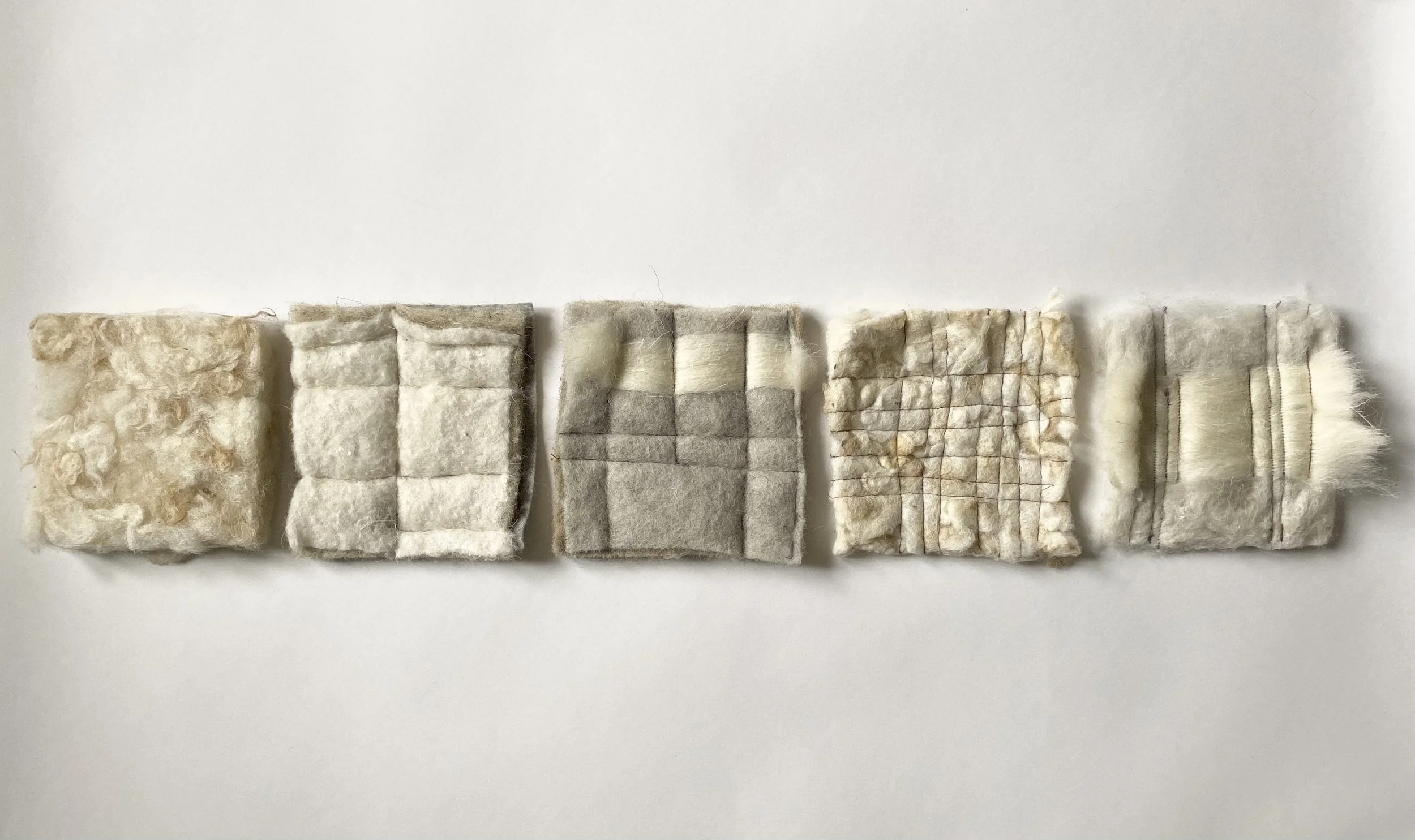 Jane’s approach and methodology encompasses many craft-based traditions and the time invested in each piece of work through her rigorous approach to process. Where the laborious repetition of doing becomes somewhat ritualistic. When applied to ‘making applications’ such as sewing, quilting and spinning, these tasks are undertaken almost subconsciously, the body memory holding on to the monotonous movements and patterns of construction. Jane talks of growing the work, where it can be picked up and worked for short periods of time and revisited when convenient. Within many of Jane’s collections of work made for this exhibition, her thinking has been underpinned by folklore and fairy stories.